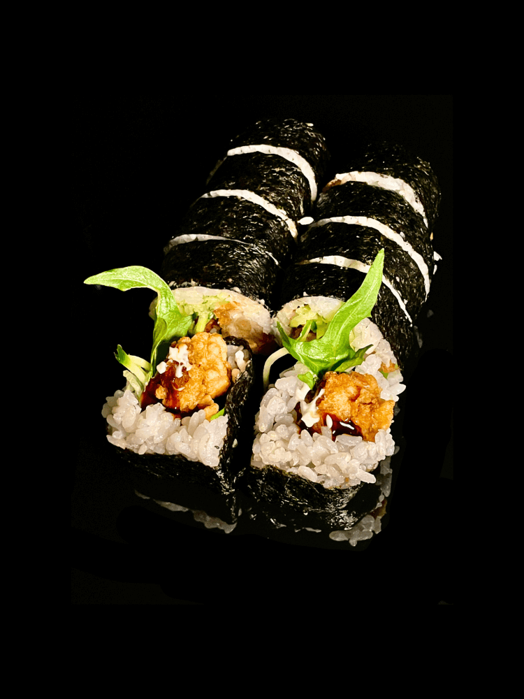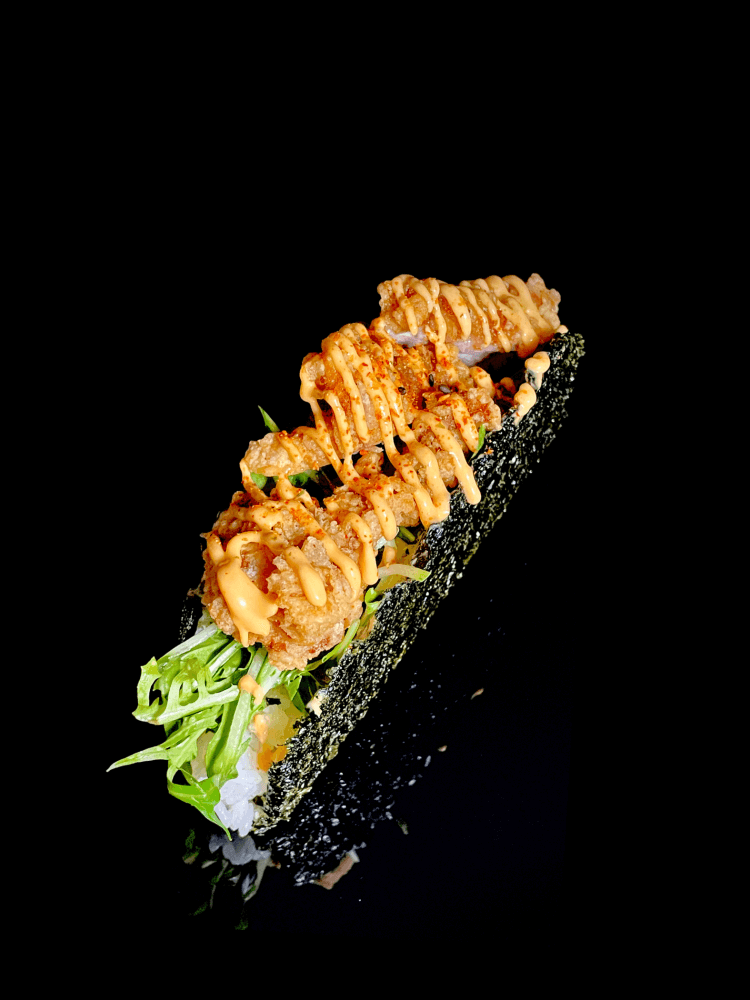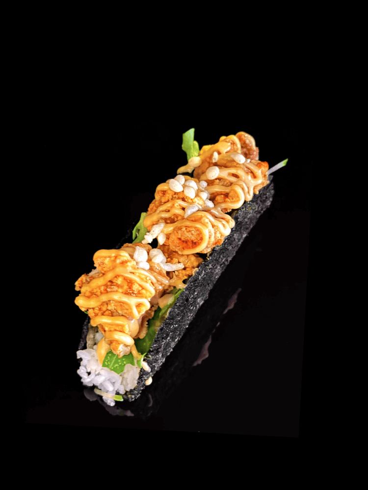 with cucumber, lettuce, crispy chicken, spicy mayo
