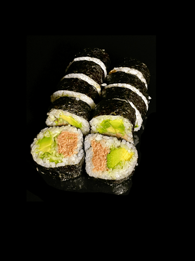 Cooked tuna with avocado, cucumber, spicy mayonnaise, sesame seeds