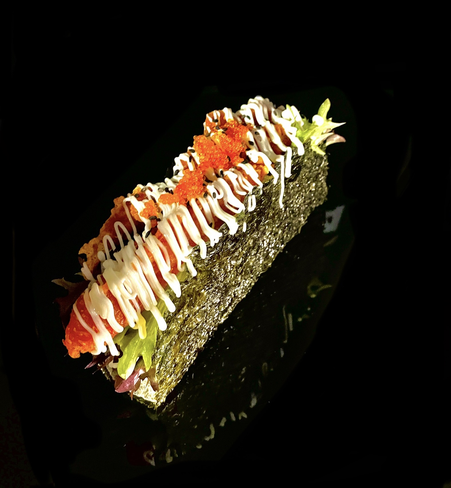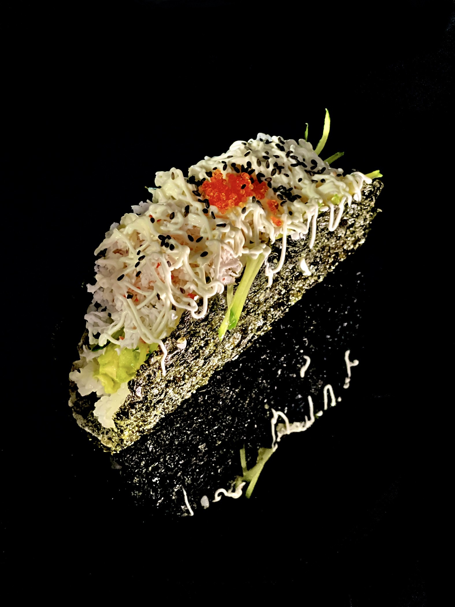 Spicy soft shell crab with lettuce, mayonnaise, caviar